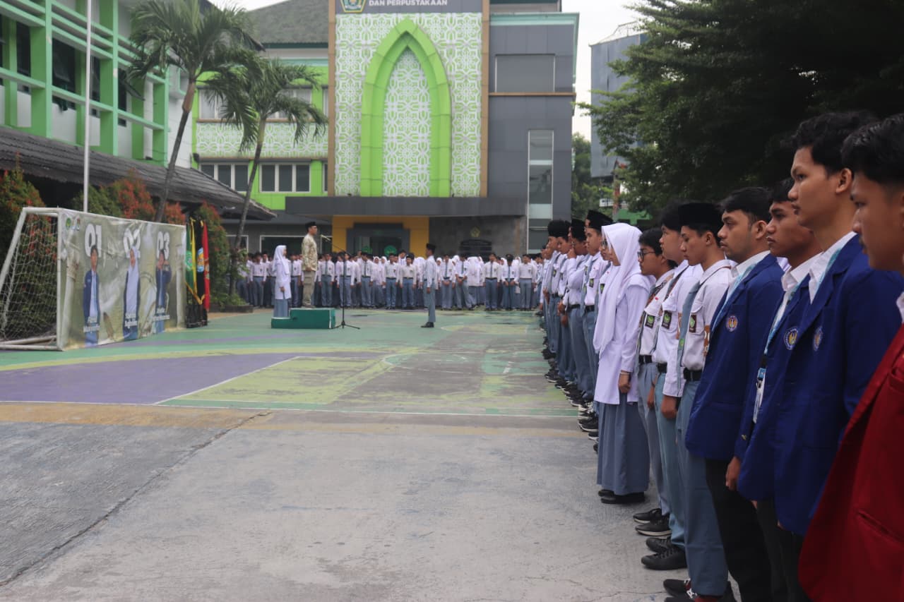 Yogyakarta (MAN 1 Yogyakarta)-Memasuki agenda prosesi pemilos yang berlangsung di MAN 1 Yogyakarta yang sampai pada tahap orasi dan debat kandidat calon ketua OSIS, pada Senin, (08/09/2025) di halaman depan dilangsungkan apel bendera hari Senin dengan pembina upacara Ketua KPU Kota Yogyakarta, Noor Harsya Aryosamodro, S.Sn., MAP. Prosesi pemilos di MAN 1 Yogyakarta telah memasuki tahap orasi dan debat kandidat calon ketua OSIS. Mengikuti tahapan ini, seperti biasanya, MAN 1 Yogyakarta menyelenggarakan apel bendera yang akan dilanjutkan dengan orasi dan debat kandidat calon ketua OSIS, dengan mengundang Ketua KPU Kota Yogyakarta sebagai pembina upacara. Kehadiran Harsya membersamai seluruh civitas MAN 1 Yogyakarta ini untuk memberikan motivasi bagi murid-murid MAN 1 Yogyakarta, baik para kandidat terpilih calon ketua OSIS maupun para calon pemilihnya.